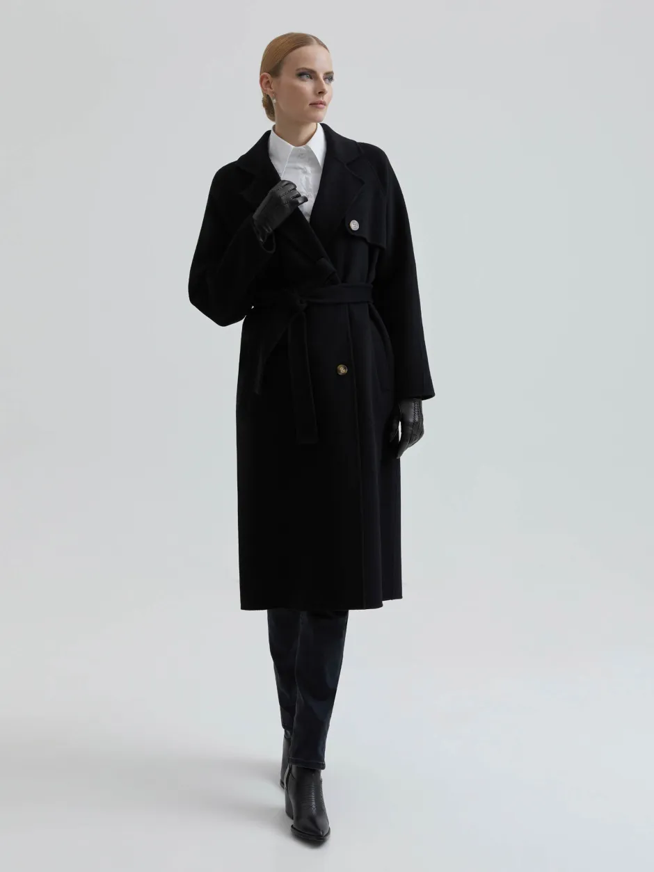 Tyylikäs naisten villakangastakki, käännekaulus ja napitus. Käytännöllisyyttä lisäämään isot sivutaskut. Yksivärinen klassinen design, mukana vyö korostaen vyötäröä. Huolitellut yksityiskohdat nappilistassa ja koristenapeissa.