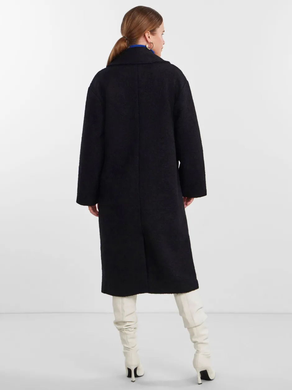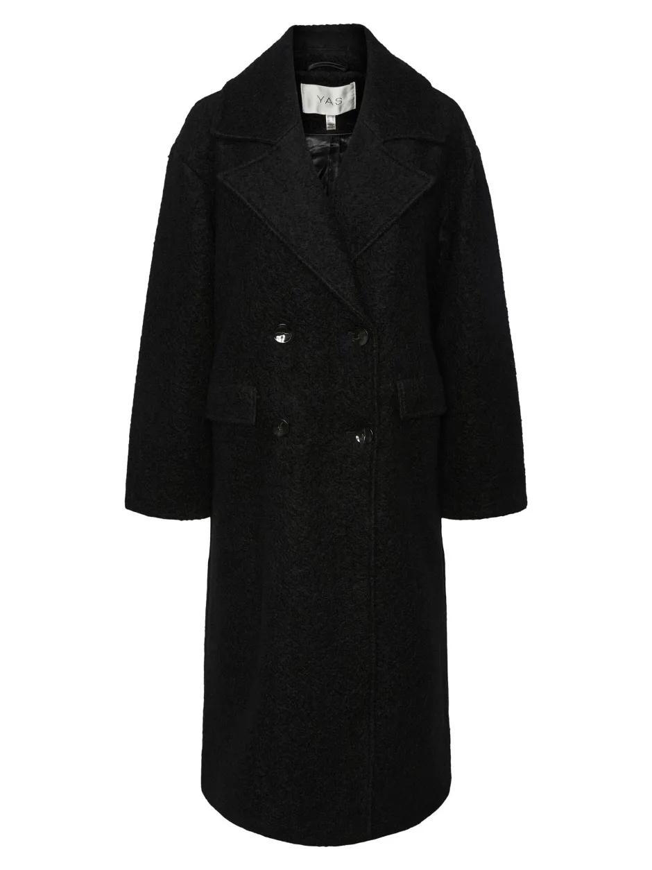 Tämä tyylikäs kaksirivinen villasekoitetakki on täydellinen valinta viileisiin päiviin. Ylisuuri ulsterikaulus lisää eleganttia ilmettä, ja läpälliset nappitaskut tuovat käytännöllisyyttä. Takissa on nappikiinnitys edessä, se on vuorattu ja sen pitkänmallinen leikkaus luo ajatonta tyyliä.
