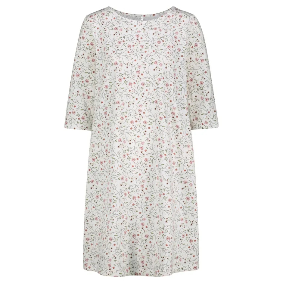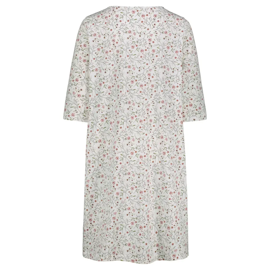 Klementin ihanan pehmeässä yöpaidassa on rennon väljä istuvuus, reilu pyöreä pääntie ja 3/4 -pituiset hihat. Mukavan väljä malli ja pehmeä materiaali saavat yöpaidan laskeutumaan miellyttävästi ja tuntumaan mukavalta päällä. Kankaassa on suloinen kukkakuosi.