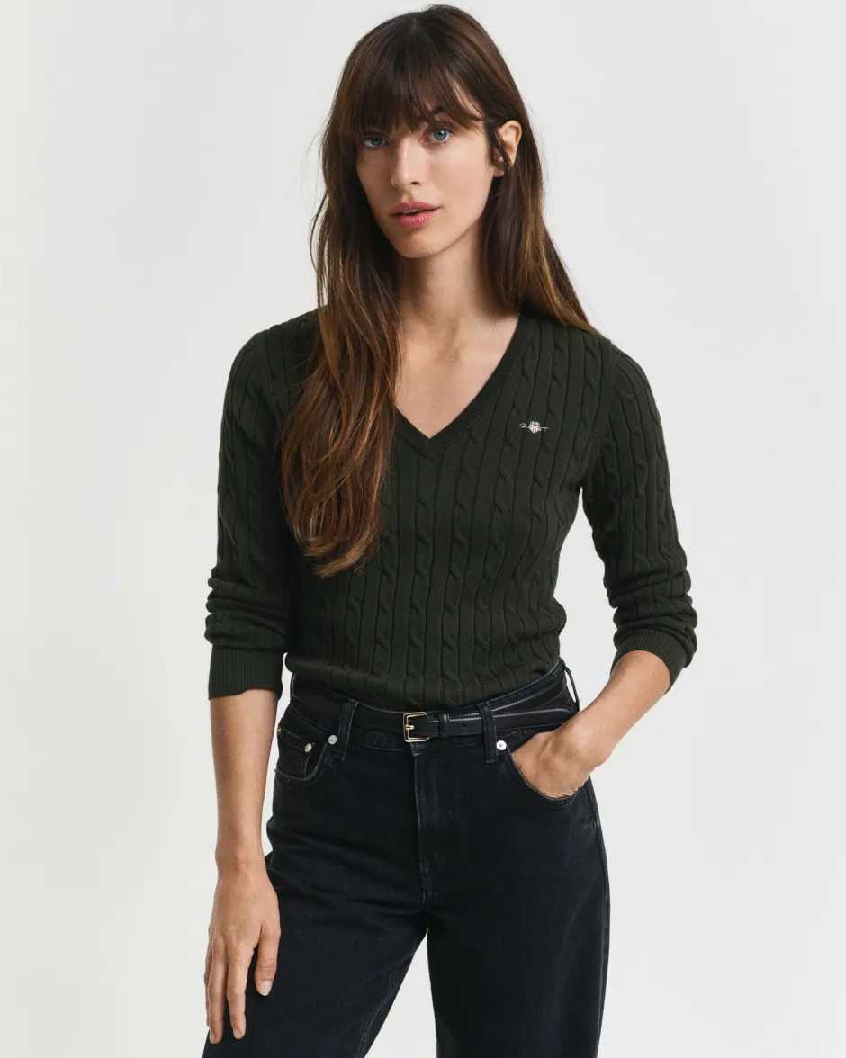 Kapea mitoitus V‑pääntie Resorit hihansuissa ja helmassa Rinnassa kirjailtu GANT-kuvio