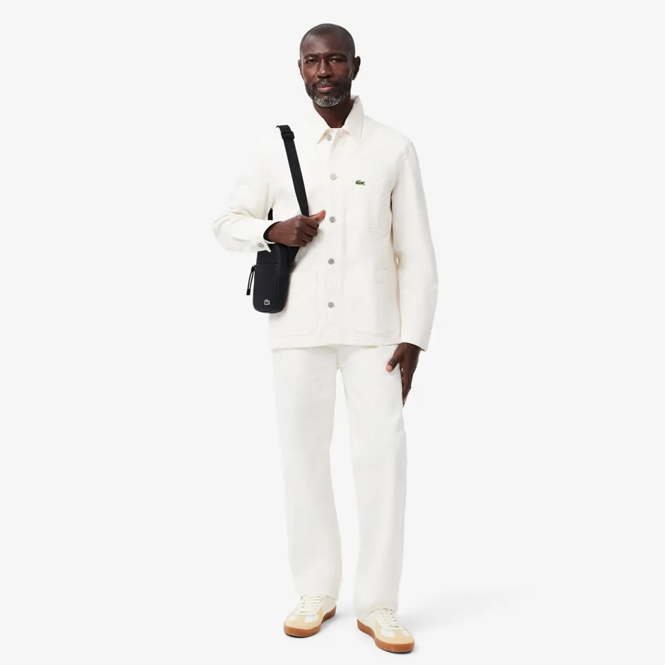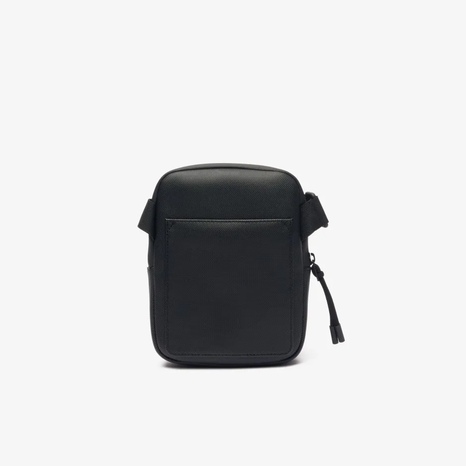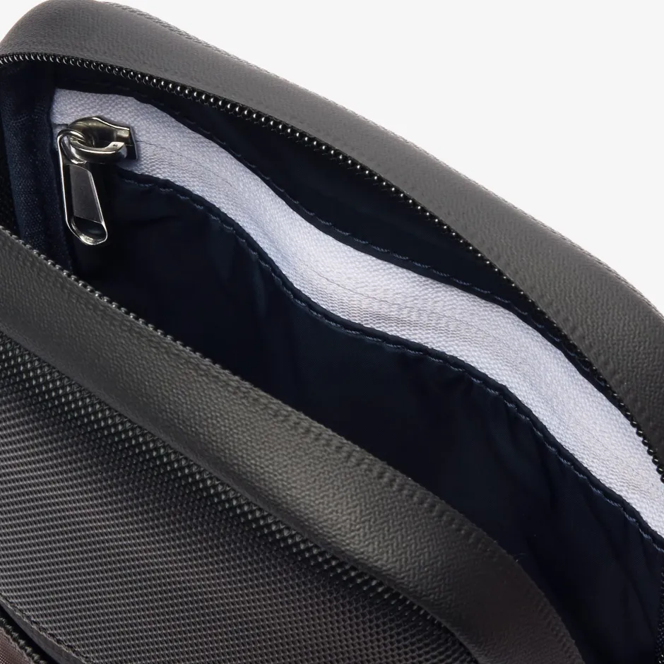 Tämä pieni, litteä, kestävästä kankaasta valmistettu laukku yhdistää toiminnallisuuden ja urbaanin ilmeen. Vetoketjulla ja useilla käytännöllisillä taskuilla varustetussa laukussa on ikoninen pieni vihreä kirjailtu krokotiili. Säädettävän olkahihnan ansiosta voit käyttää sitä malliston bomber-takin tai parkan kanssa.