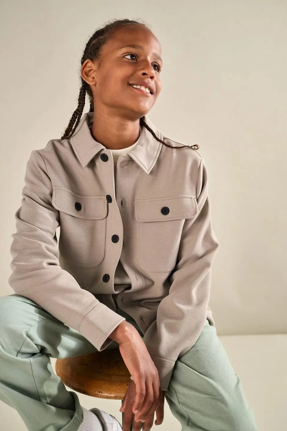 Lasten paitatakki pitkillä hihoilla ja nappikiinnityksellä.