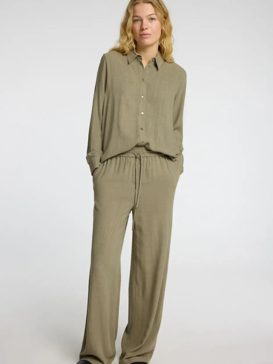 Kun sää lämpenee matkalla, muista sijoittaa pellavasekoiteisiin housuihin. Pellava on kevyttä ja kestävää, joten se sopii ihanteellisesti kevääseen ja kesään, ja on myös erittäin monipuolinen. Näissä housuissa on mukava joustava vyötärö. Suosittelemme yhdistämään ne t-paidalla, ylisuurella bleiserillä ja klassisilla valkoisilla tennareilla. – Korkea joustava vyötärö – Säädettävä kiristysnauhakiinnitys – Viistot sivutaskut – Suora lahje – Löysä istuvuus