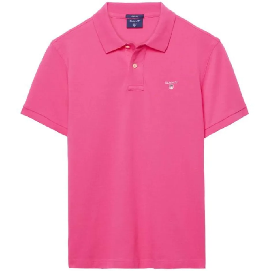 Gant miesten lyhythihainen pikeepaita. Resorikaulukset, edessä lyhyt nappilista ja helmassa lyhyet halkiot sivuilla.
