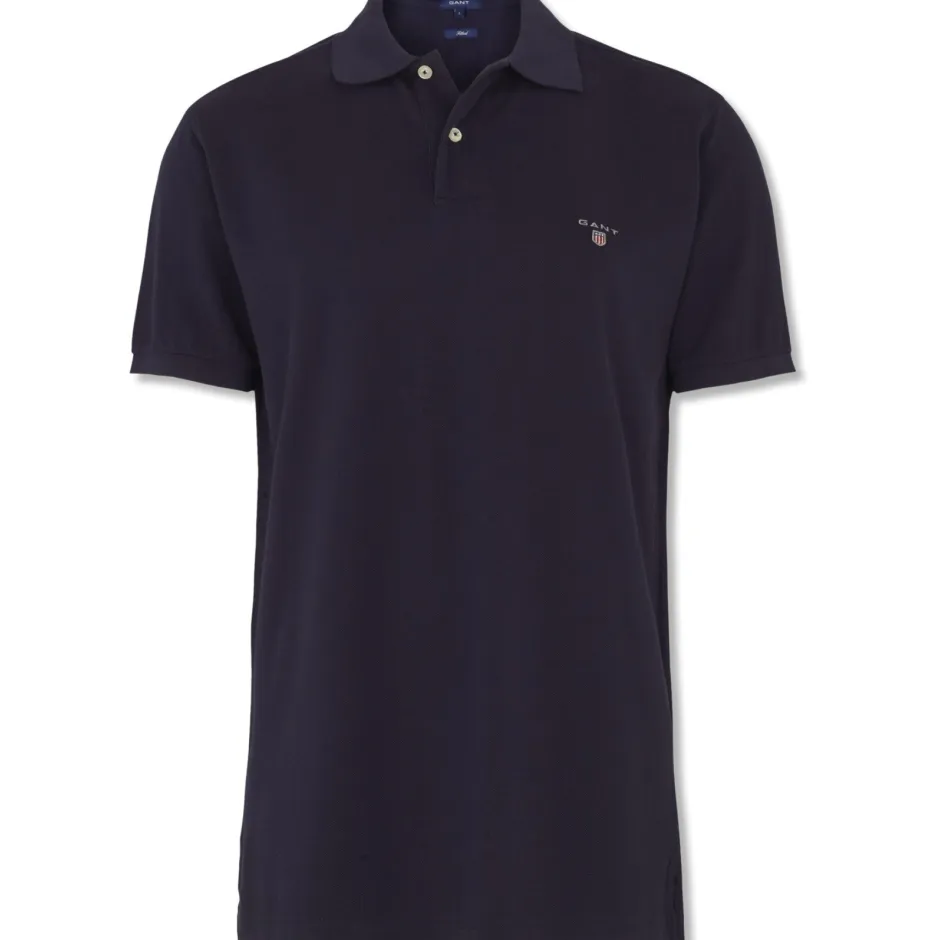 Gant miesten lyhythihainen pikeepaita. Resorikaulukset, edessä lyhyt nappilista ja helmassa lyhyet halkiot sivuilla..