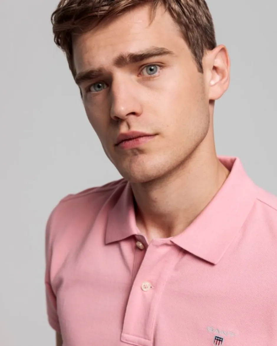 Gant miesten lyhythihainen pikeepaita. Resorikaulukset, edessä lyhyt nappilista ja helmassa lyhyet halkiot sivuilla..