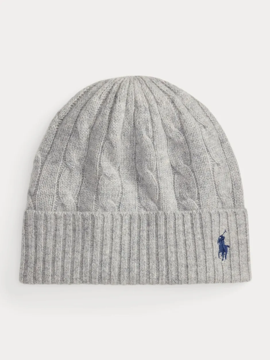 Tämä villasta ja kashmirista valmistettu pipo erottuu Ralph Laurenin tunnusomaisen palmikkoneuleen ja huolellisesti kirjaillun Pony-kuvion ansiosta,