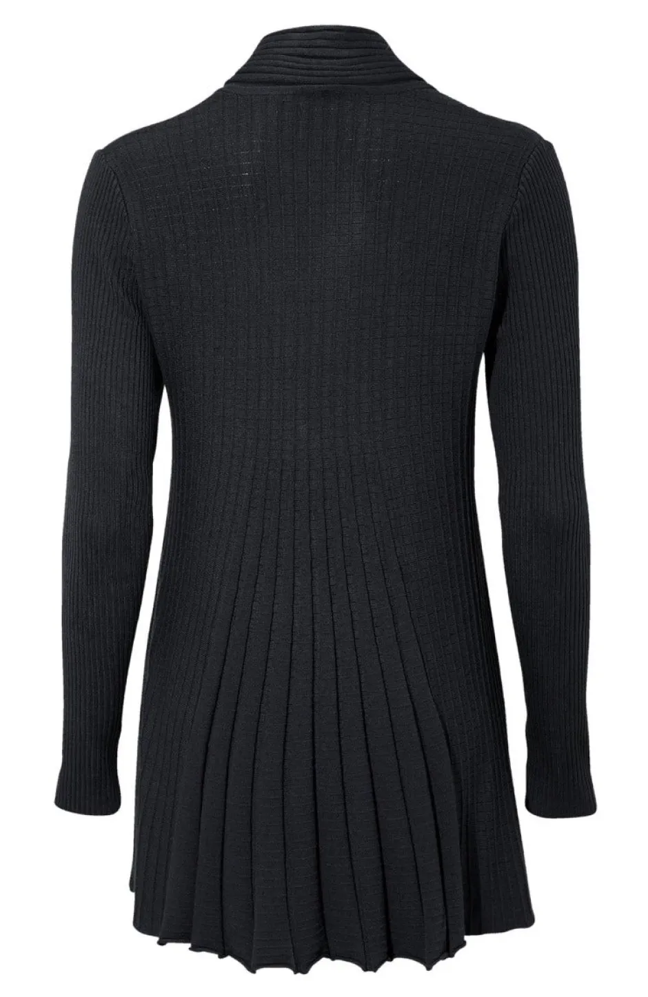 Naisten ohut, pitkä neuletakki. Kaunista koristeneulosta, edessä ei kiinnityksiä. Koossa M pituus n.83 cm.