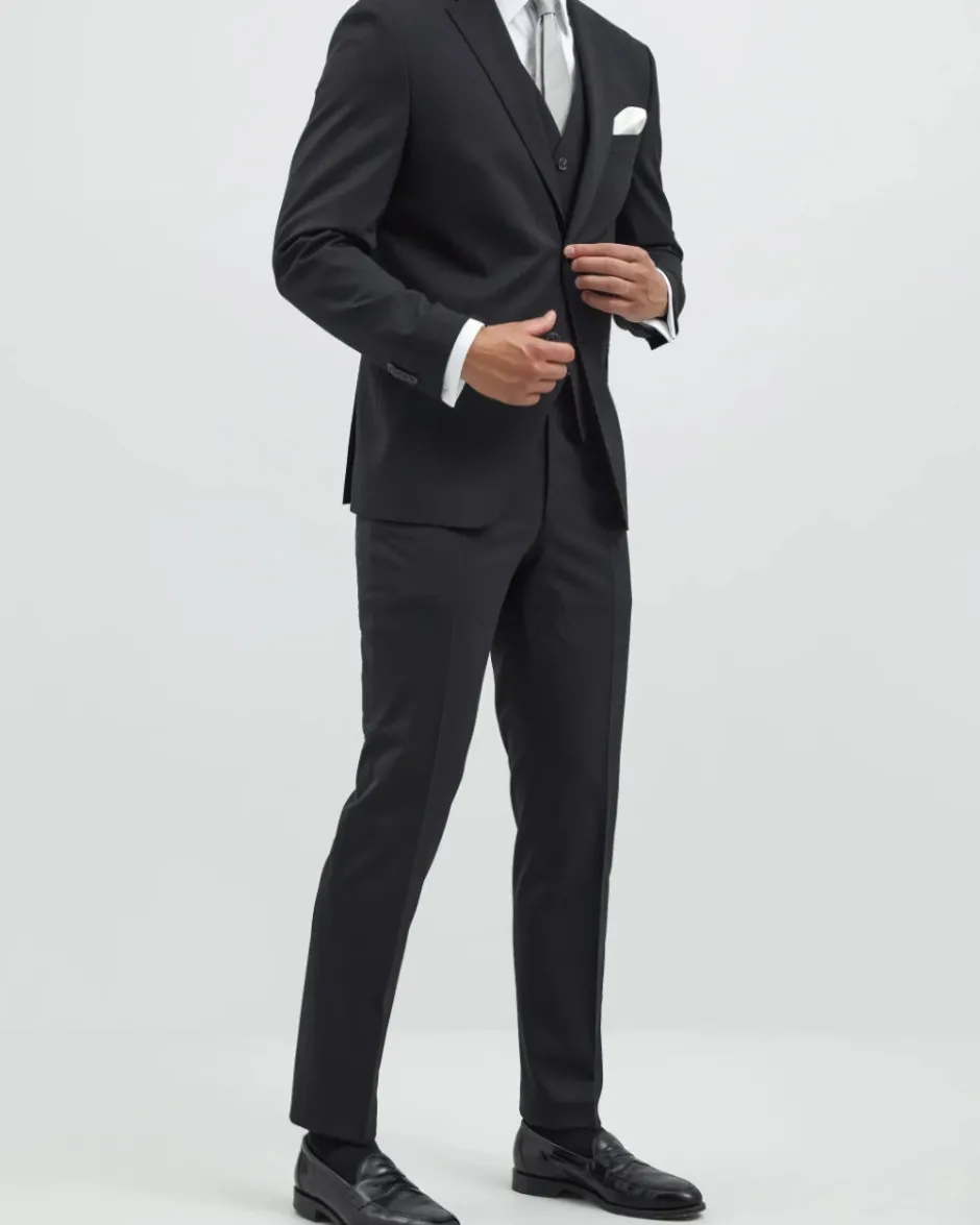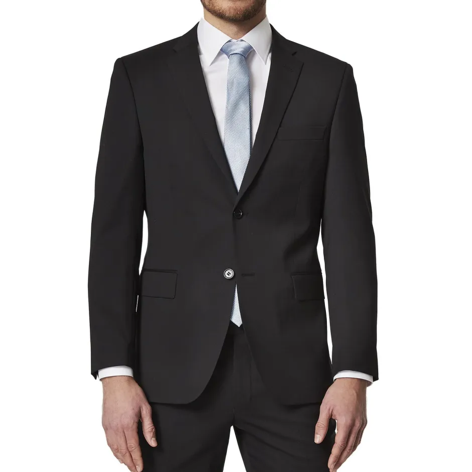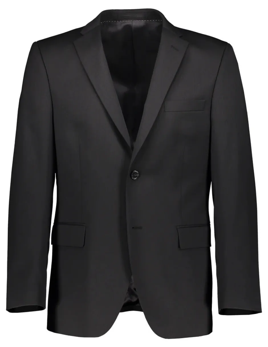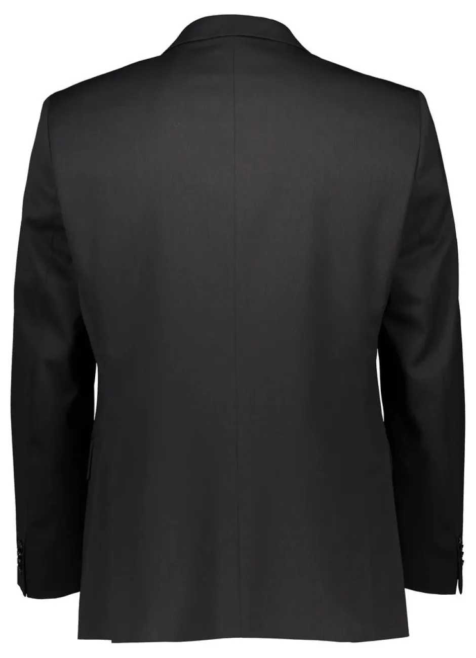 Miesten klassisen tyylikäs musta irtotakki normaalimitoituksella. Sivuhalkiot ja neljä povaria. Yhdistä pukuna housu 744-1200-5421.