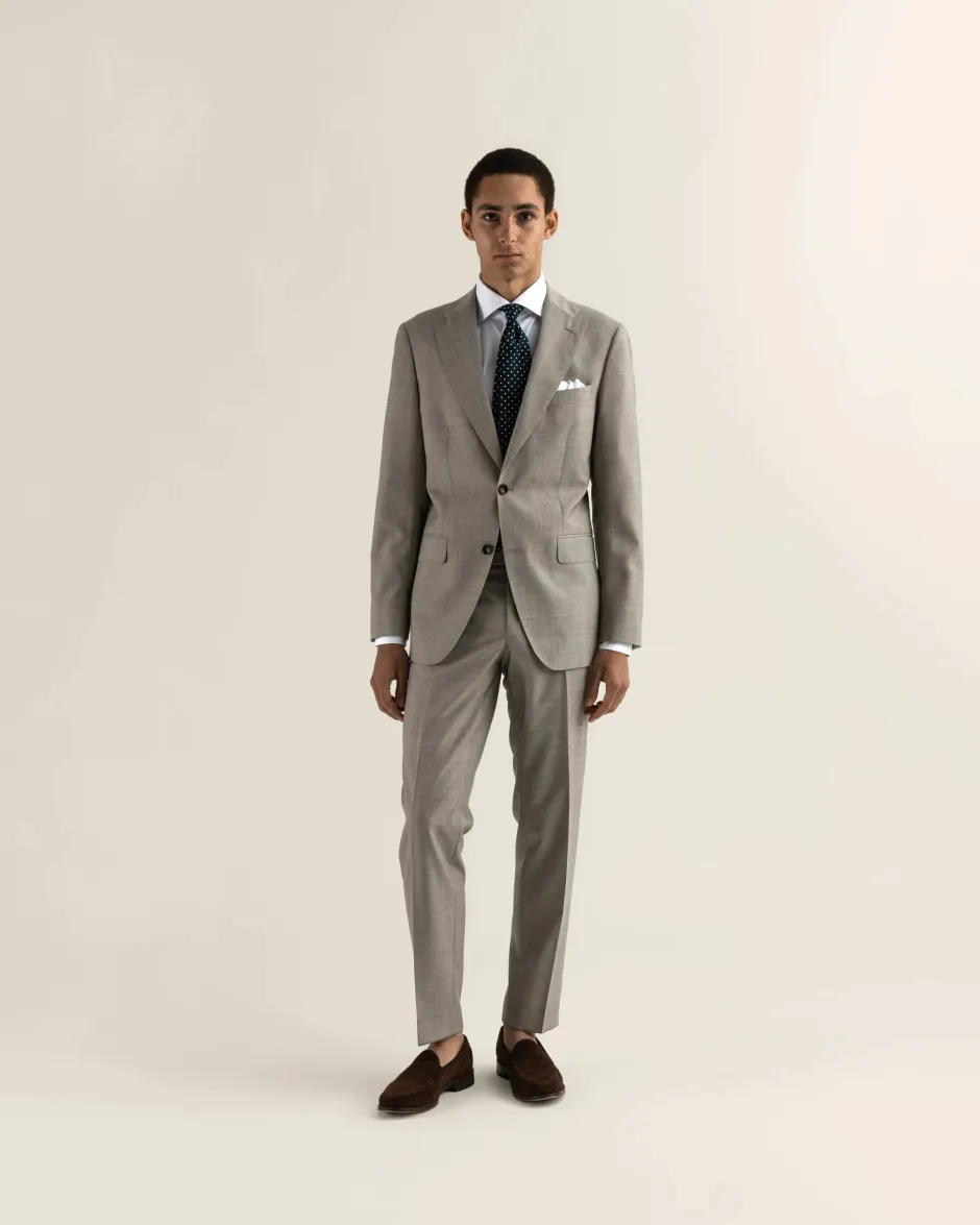 Upea puvuntakki ylellisellä Vitale Barberis Canonicon 21 Micron-villakankaalla. Modern fit-mitoitus antaa tilaa ja lisää hengittävyyttä. Raikas vaalea hiekan sävy toimii kaikissa kevään ja kesän tilaisuuksissa.