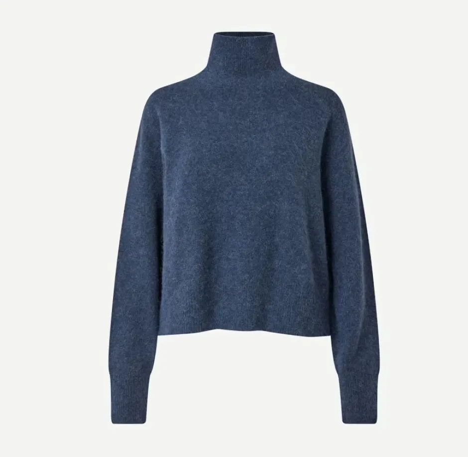 Naisten ihanan pehmeä ja hieman pörröinen neulepusero, jossa puolikorkea ns.kilpikonnakaulus . Helmassa ja hihansuussa resorineulos. Mallia on helppo yhdistellä hameiden ja housujen kanssa ja sen voi pukea vaikka mekon päälle.