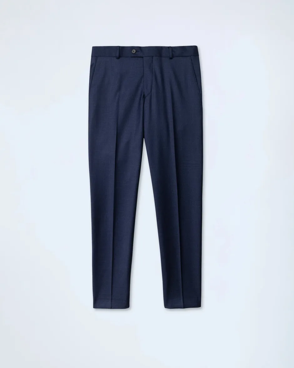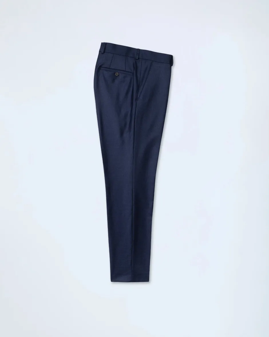 Tyylikäs tummansininen business-puku. Laadukkaassa ja ilmavassa Redan Super S110’s villakankaassa tyylikäs mikroruutukuosi. Tästä puvusta suorastaan huokuu karisma ja eleganssi. Puku leikattu Modern fit-malliin.