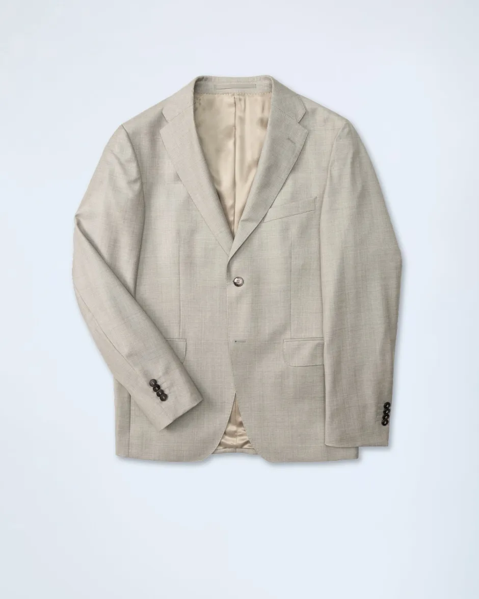 Tyylikäs ja juhlava shamppanjanvärinen puvuntakki juhlapukuun, joka on valmistettu upeasta Vitale Barberis Canonicon Super 110’s juhlavillasta.