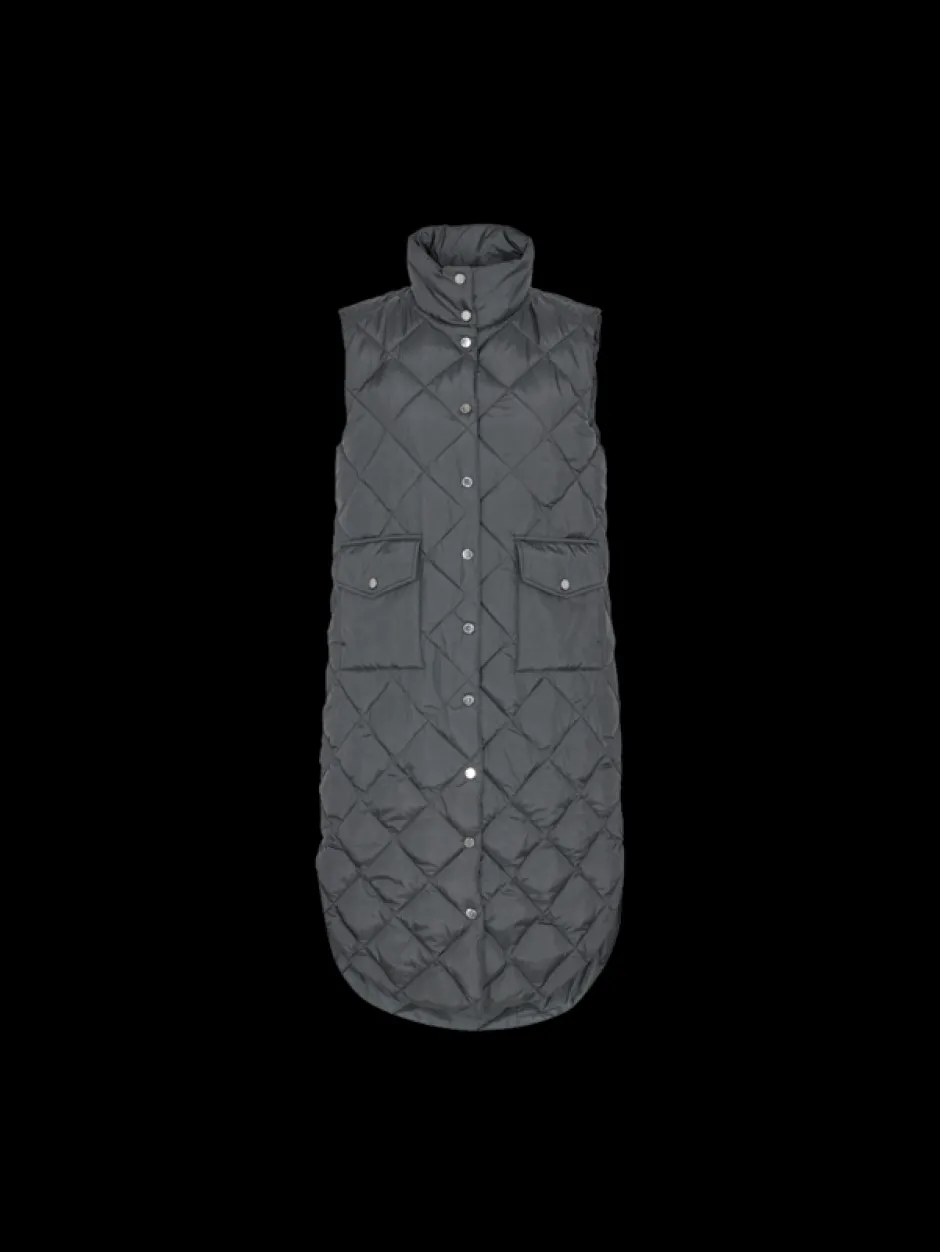 Freequentin tyylikäs, polvimittainen tikkiliivi. Edessä nappikiinnitus ja läpälliset taskut. Hihattomassa vanutäytteisessä liivissä on pyöristetty helma ja korotettu kaulus. Monikäyttöinen ja tyylikäs vaate, joka sopii asuun kuin asuun!