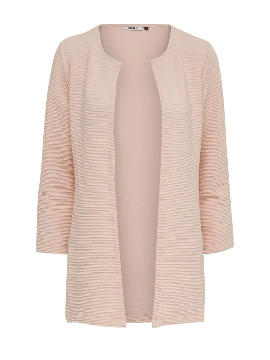 Only naisten trikootakki 7/8-hihoilla. Kankaassa raitastruktuuripinta, edestä avoin. Koossa S pituus n.72 cm.