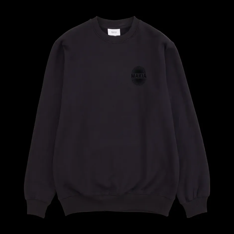 Makian unisex collegepaita. Pieni printti rinnassa ja iso printti selässä. Ribattu kaulus, helma ja hihansuut. Relaxed fit istuvuus.
