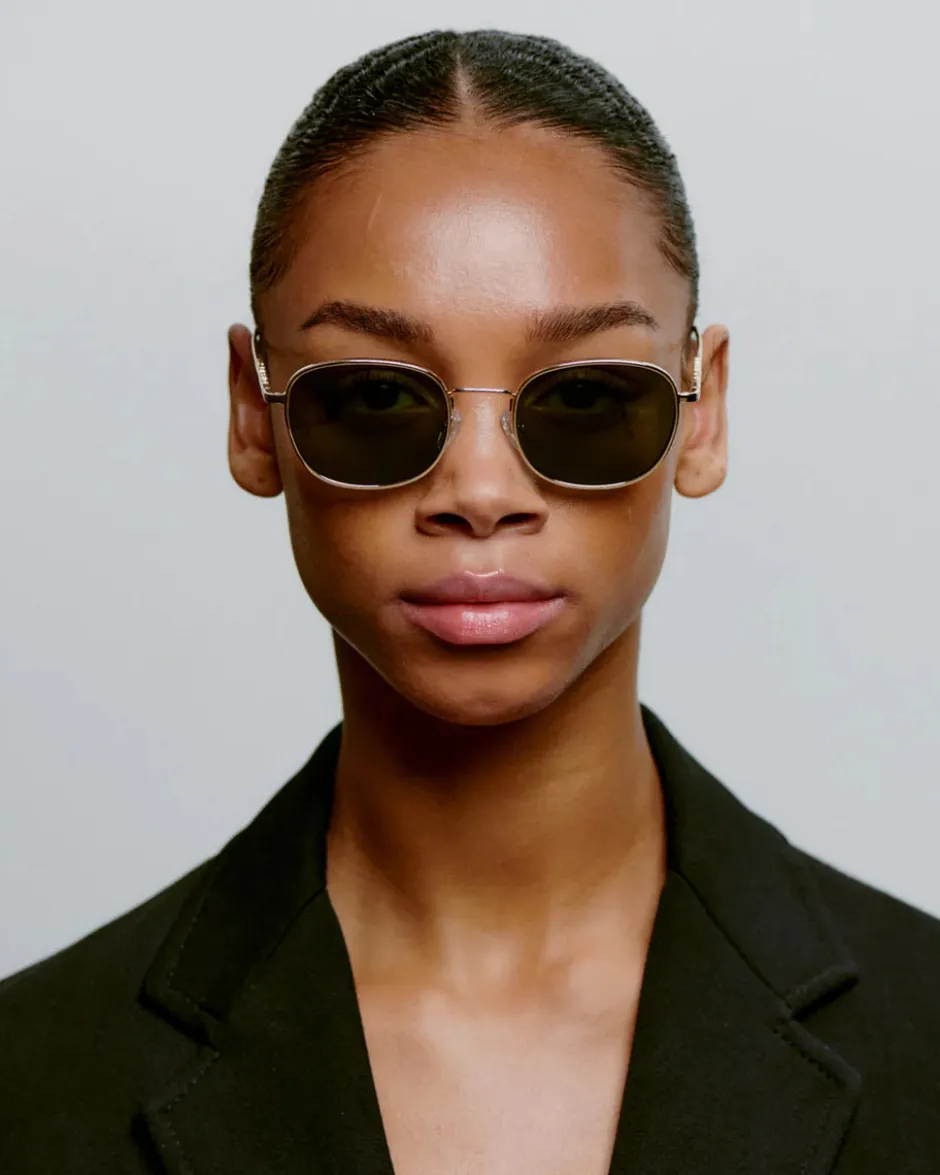 Yli 50 % kierrätysmateriaaleja”>Uudelleentulkinta HELLOsta. 60-luvun Hollywoodin inspiroima nelikulmaiset linssit tyylikkäässä metallikehyksessä, joka kehystää kasvot erottuvalla mutta ajattomalla tavalla. Klassinen elokuvatähti tunnelma.