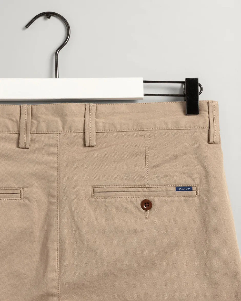 Kapea mitoitus Normaali vyötärö ja kapeat lahkeet Mukavan joustavat Takana olevan teretaskun yläpuolella kudottu GANT-merkki Malli on 189 cm pitkä ja käyttää kokoa 32/32