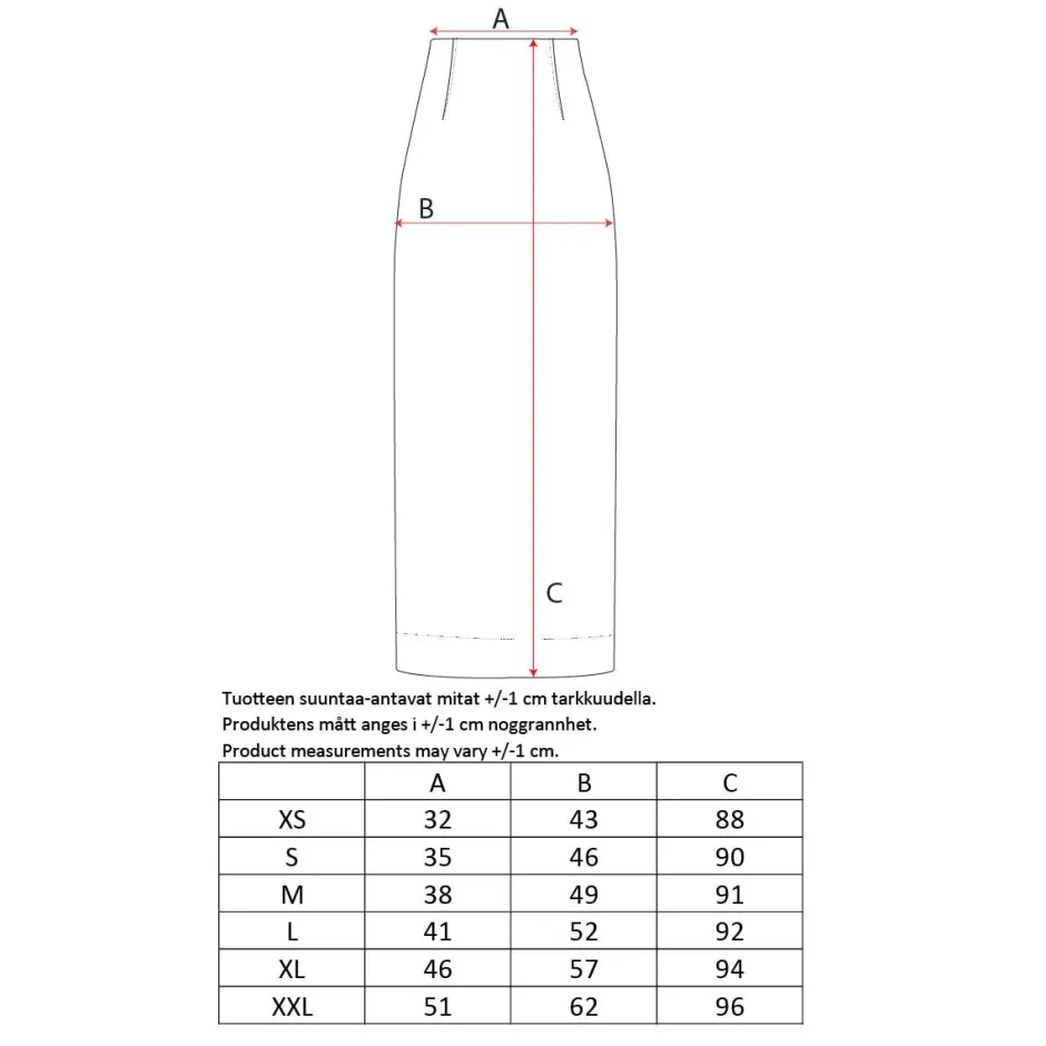 • Pituus vyötäröltä helmaan koossa S 90 cm