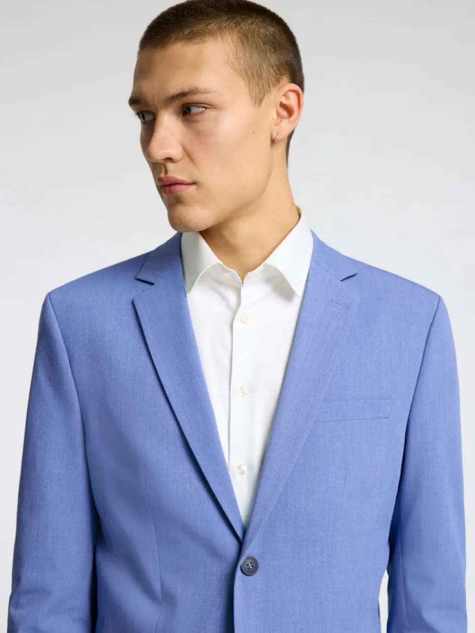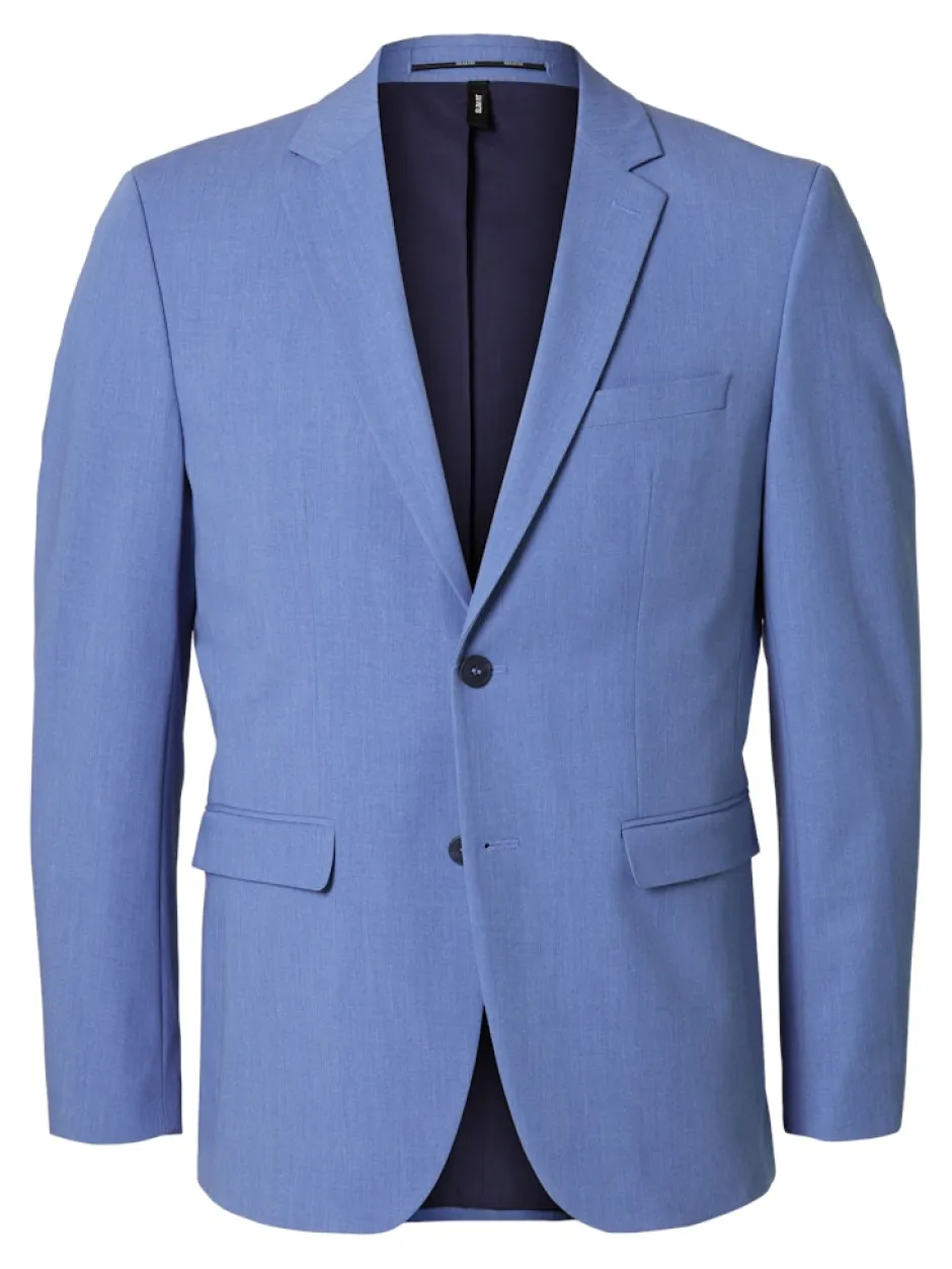 Selected Homme miesten yhdistelmäbleiseri. – Yksirivinen – Lovitetut käänteet – 2 nappia – Pitkät hihat napitetuilla hihansuilla – Rinta- ja etutaskut – Vuorattu – Slim fit