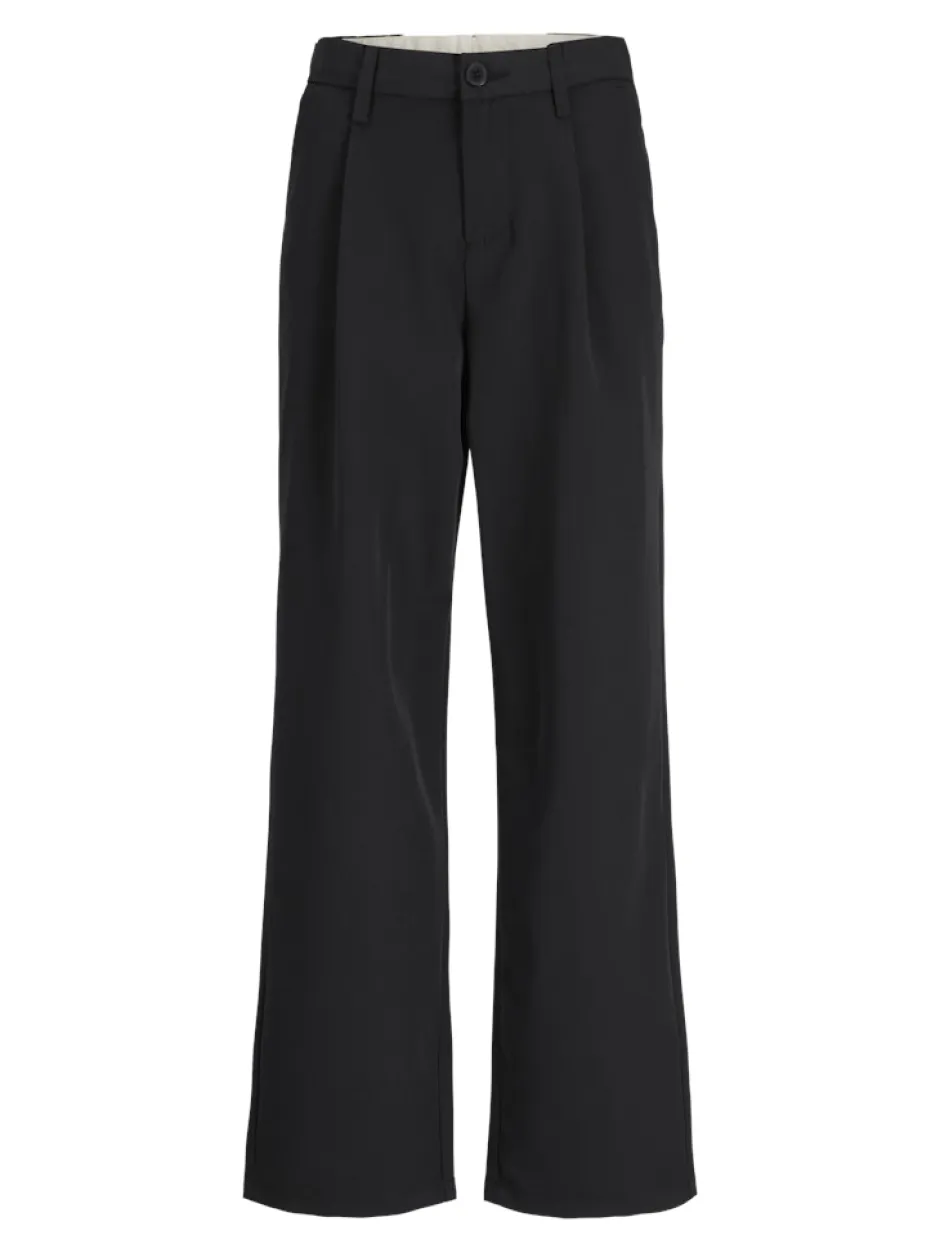 Jack & Jones Junior Wide Leg Fit Junior Chinos ovat rennot housut leveilla lahkeilla sekä korkealla vyötäröllä. Housuissa on vetoketjukiinnitys ja takana valetasku, ja ne on suunniteltu 8–16 vuotiaille pojille tyylikkääksi vaihtoehdoksi farkuille. Materiaali on kudottua, kestävästä seoksesta, jotta housut säilyvät muodossaan.