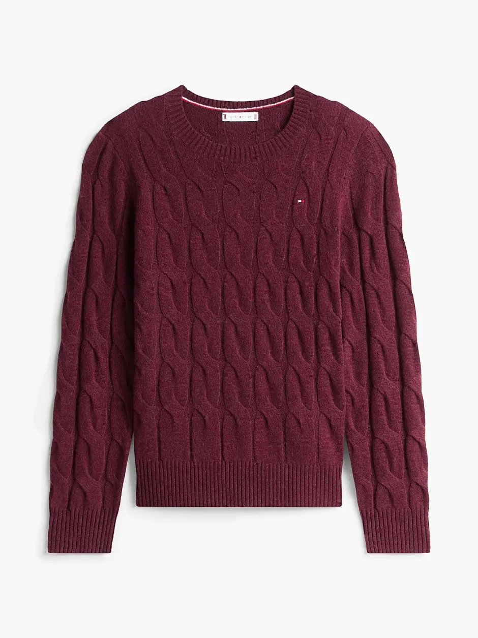 Tommy Hilfiger ihana 100% villainen neule. Pehmeä materiaali ja klassinen palmikkoneulos regular fit istuvuudella. Joustinneulotut kaulus, hihansuut ja helma.