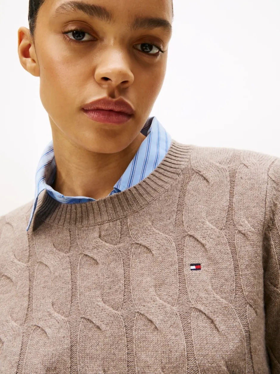 Tommy Hilfiger ihana 100% villainen neule. Pehmeä materiaali ja klassinen palmikkoneulos regular fit istuvuudella. Joustinneulotut kaulus, hihansuut ja helma.