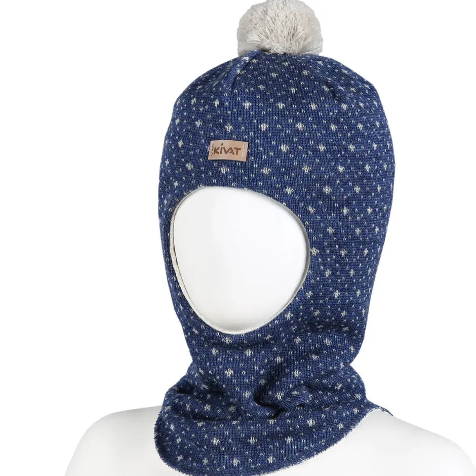 KIVAT lasten Ahto-kypärämyssy, jossa iso pallotupsu ja kuviona eri kokoisia palasia. Pohjaväri vaaleanharmaa. Kypärämyssyn päällinen on 100% villaa. Myssyssä on miellyttävän tuntuinen luomupuuvillavuori sekä lämmittävä vanu otsan ja korvien kohdalla. Valmistettu Suomessa. Valmistettu Öko-tex-merkitystä villasta (100% WO). Vuori valmistettu luomupuuvillasta (97% CO, 3% EA). Villapesu 30 astetta. Koko/ Käyttäjän päänympärys 1 = noin 47 – 48 cm 2 = noin 49 – 51 cm 3 = noin 52 – 53 cm 4 = noin 54 – … cm Koska kypärämyssyn materiaali on joustavaa, ovat annetut mitat suuntaa-antavia. Parhaiten sopivin koko löytyy sovittamalla.