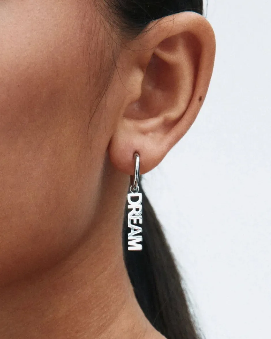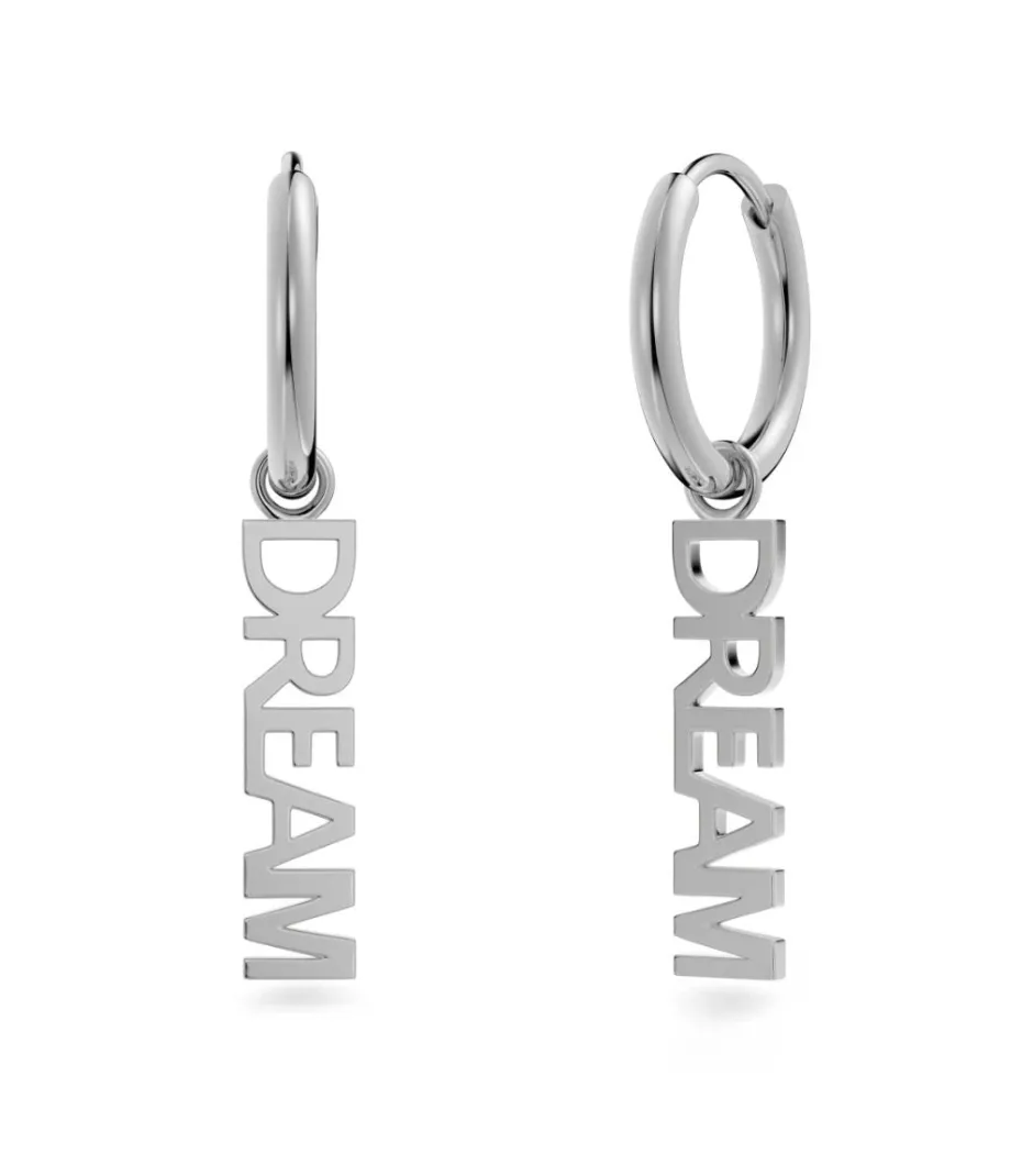 Dream hoops ovat hienolla tekstikaiverruksella varustetut korvakorut, joita rakastat käyttää itse tai antaa lahjaksi. Dream Hoops on tässä kiiltävää ruostumatonta terästä. Voit myös käyttää korvakoruja ilman Dreams tekstiä pelkästään renkaana.