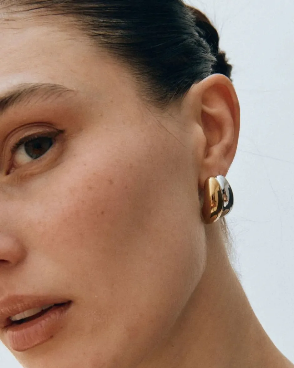 Edblad-klassikko Furo tässä kullan ja teräksen yhdistelmänä. Furo-korvarenkaissa on ihanan pyöristetty muoto, joka on leveämpi keskeltä ja kapenee sen jälkeen. Furo Duo Creoles -korvarenkaiden kultainen osa on isompi kuin teräksinen, mikä luo koruun hienoa tasapainoa. Korvakorut ovat ontot, joten ne ovat kevyet käyttää. Tässä mallissa on kiiltävä 14 karaatin kultaus ja kiiltävä ruostumaton teräs. Yhdistä Duo-sarjan sormukseen tai muihin Furo-sarjan koruihin. Nimi Furo tarkoittaa japaniksi virran ydintä.
