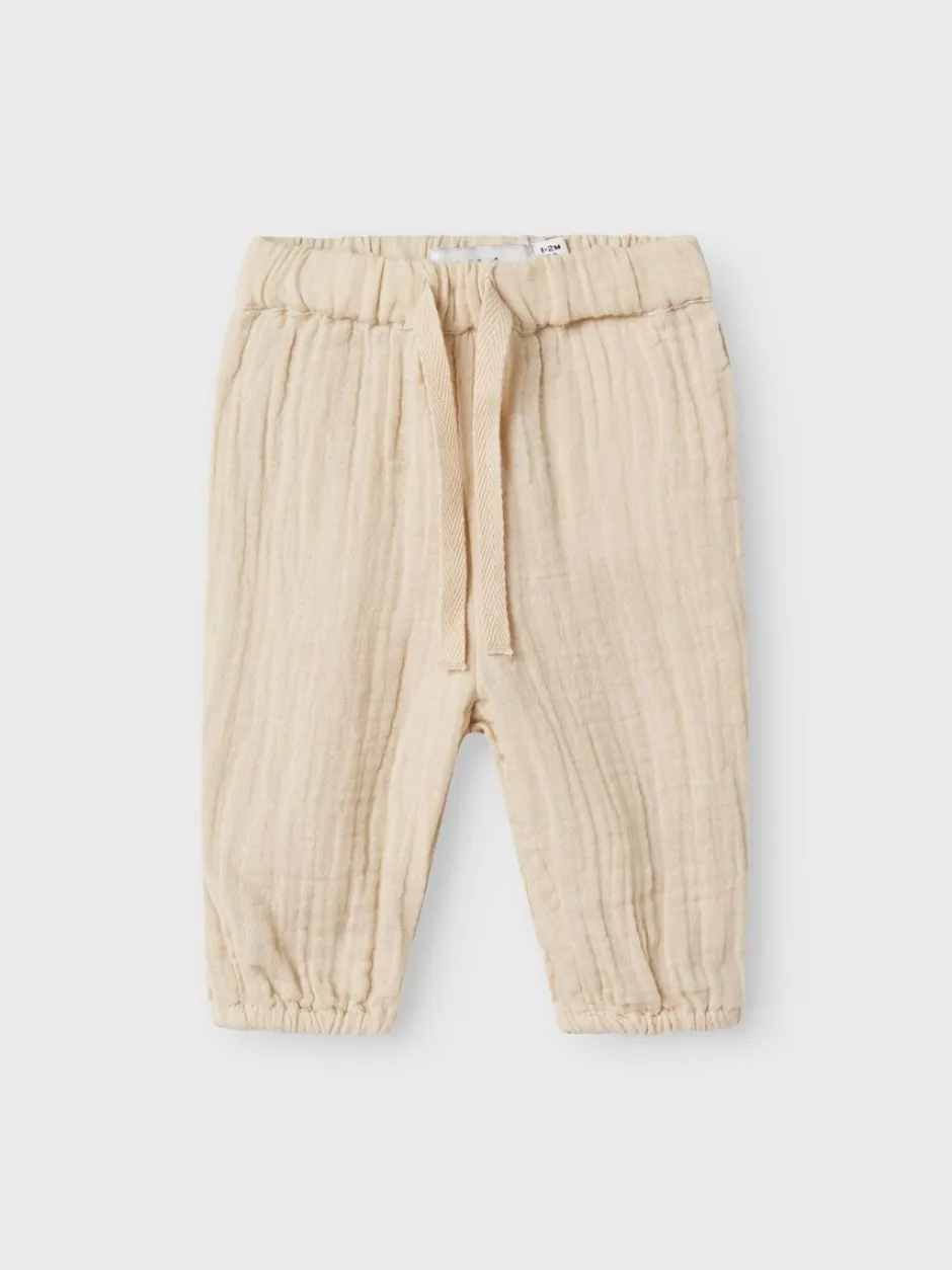 – Tuotetyyppi: regular fit -malliset housut – Kiinnitys: nyörikiinnitys – Lahkeet: joustavat lahkeensuut – Muut yksityiskohdat: säädettävä vyötärö – Muut yksityiskohdat: joustava vyötärö – Kangas: musliini – Malli: näissä housuissa on baggy fit -istuvuus lantiolla ja regular fit -lahkeet – Huomio: VAROITUS! Pidettävä poissa tulen läheisyydestä
