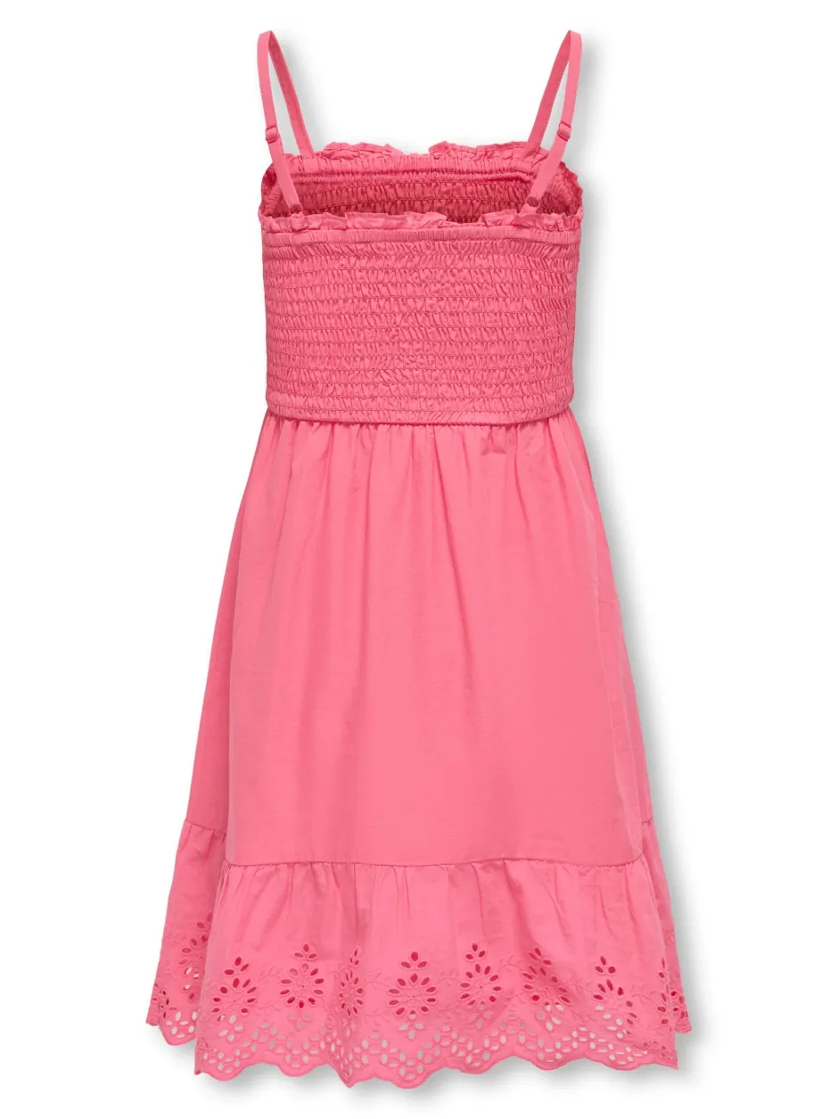 Kesämekko kauniilla pitsihelmalla. Olkaimet ovat säädettävät ja joustava vyötärö.