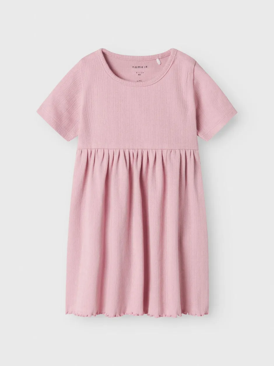 Piristä lapsesi vaatekaappia kauniilla ja tyylikkäillä mekoilla, jotka sopivat täydellisesti kaikkiin vuodenaikoihin ja tilaisuuksiin. Ribbineuloksessa on pystysuora raitakuvio. Kankaan joustavuus tekee siitä sekä mukavan tuntuisen että ajattoman näköisen.