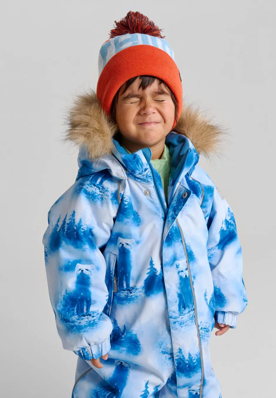 Turvallinen, irrotettava ja säädettävä huppu, jossa irrotettava tekoturkissomiste