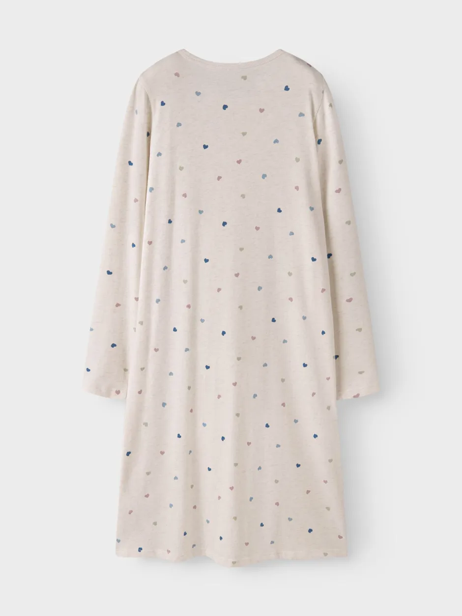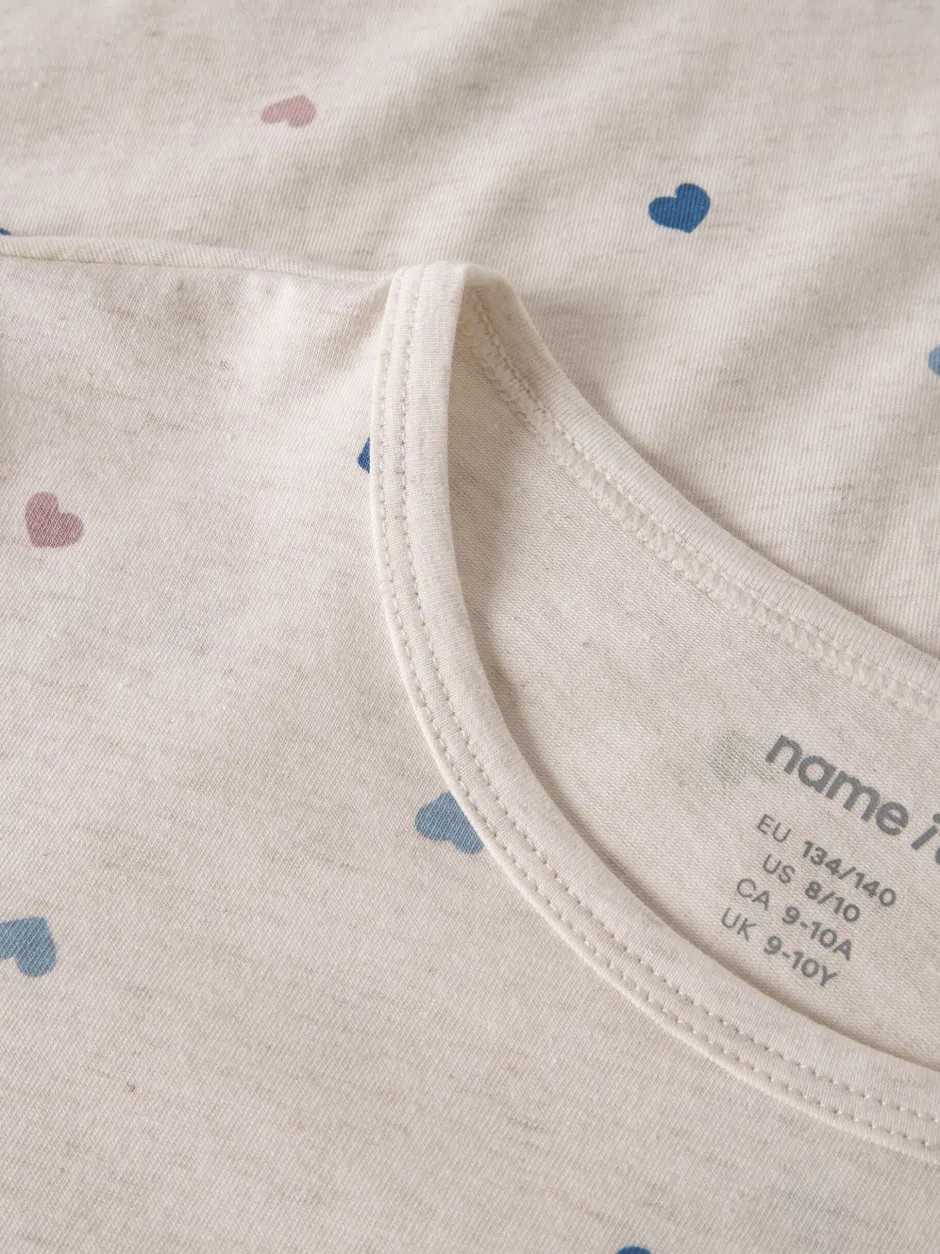 Name Itin käytännöllinen ja mukava yöpaita lapsille. Valmistettu 95 % puuvillasta ja 5 % elastaanista, joten kangas on pehmeä, hengittävä ja joustava, ja lapsen liikkuminen pysyy vapaana. Klassinen leikkaus, pitkähihaisuus ja pehmeä materiaali tekevät yöpaidasta täydellisen nukkumiseen.