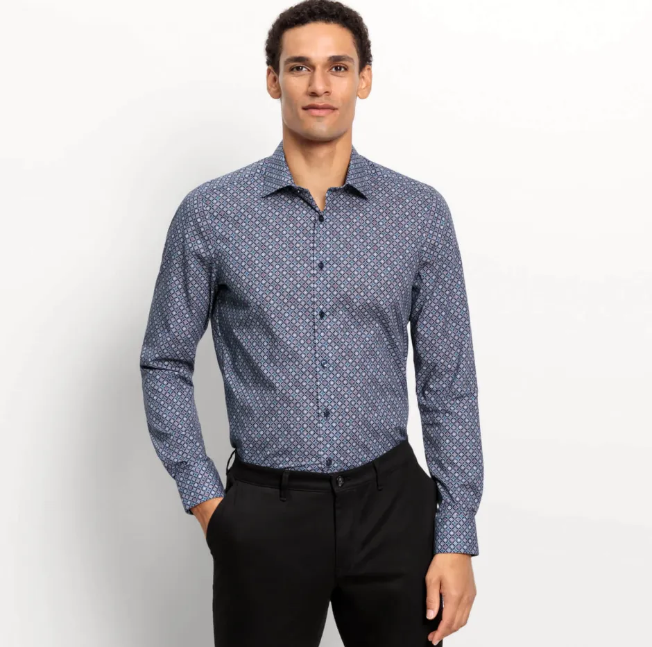 Miesten kauluspaita hieman joustavaa ja helposti silitettävää materiaalia. Kapealinjainen: koossa 39/40 (M) rinnanympärys 110 cm ja vyörärö 98 cm, koossa 41/42 (L) rinta 116 cm ja vyötärö 104 cm, koossa 43/44 (XL) rinta 124 cm ja vyötärö 112 cm.