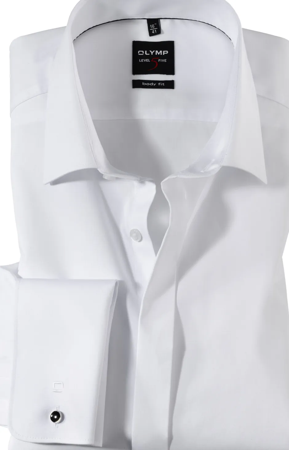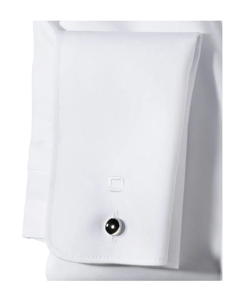 Olympin erikoispitkähihainen, valkoinen kauluspaita tuplamanseteilla ja piilonapituksella. Joustava materiaali, helppo silittää. .Kapealinjainen: koossa 39/40 (M) rinnanympärys 110 cm, vyörärö 98 cm ja pituus 80 cm. Materiaali: 97% puuvillaa, 3% elastaania..