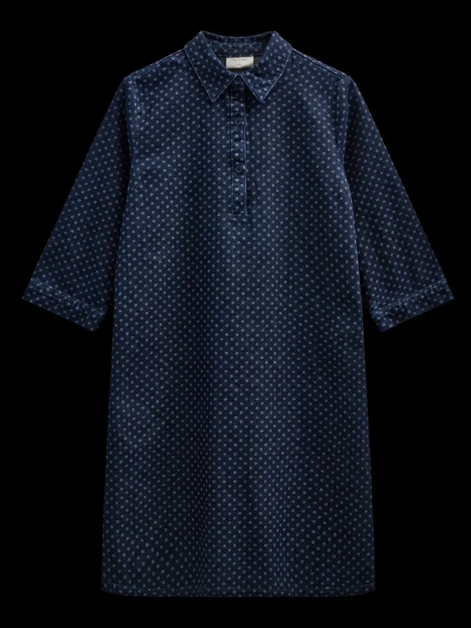 Tämä Freequent Rinna Dress on monipuolinen, tummansininen mekko, jossa yhdistyvät klassinen denim-vaikutelma ja moderni istuvuus. Mekossa on selkeä siluetti, kaunis kaulus sekä napitettava etuosa, jotka antavat ajattoman ilmeen, mutta samalla tekevät mekosta helpon pukea päälle sekä riisua. Selkeä leikkaus ja laskokset takana luovat pehmeän ja kauniisti laskeutuvan helman.