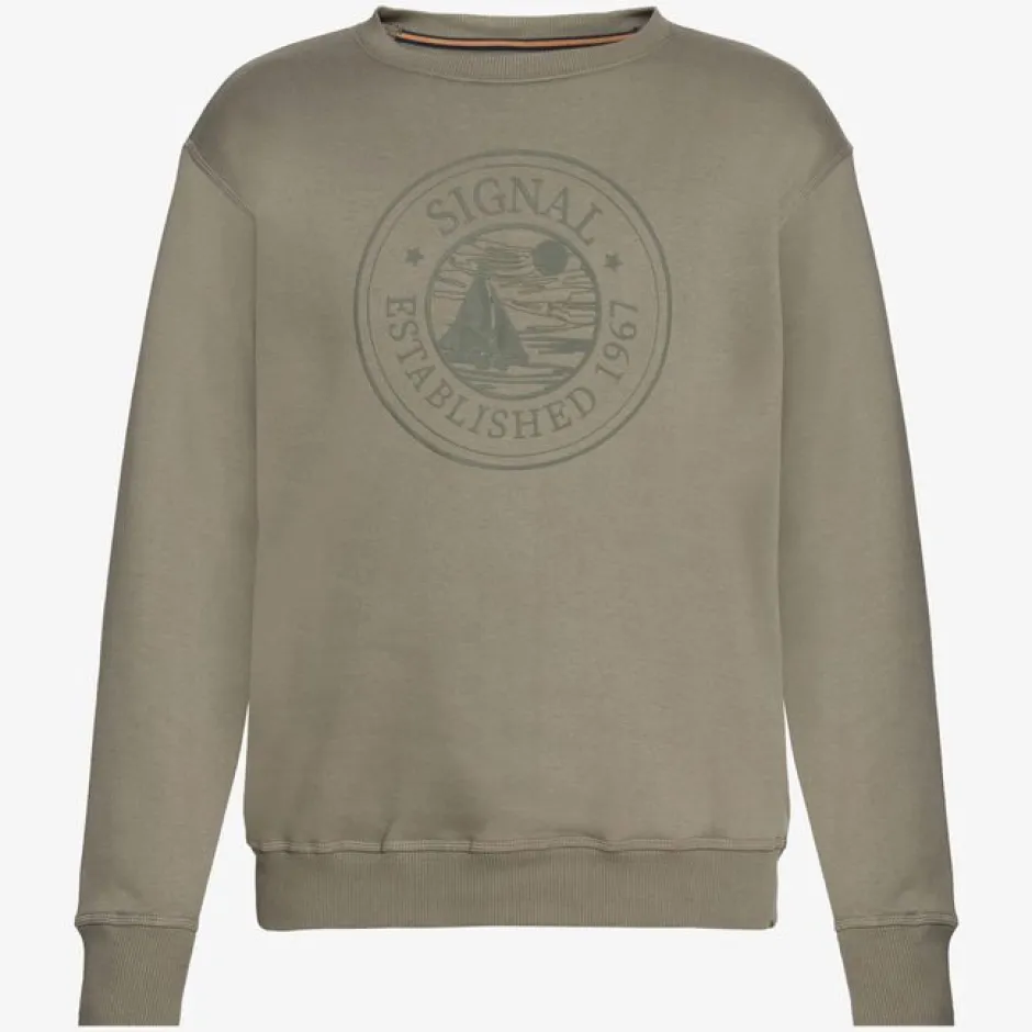 Signal-collegepaita, jossa on iso pyöreä logo rinnassa. Ribattu resori pääntiessä, hihansuissa ja helmassa takaa mukavan istuvuuden.