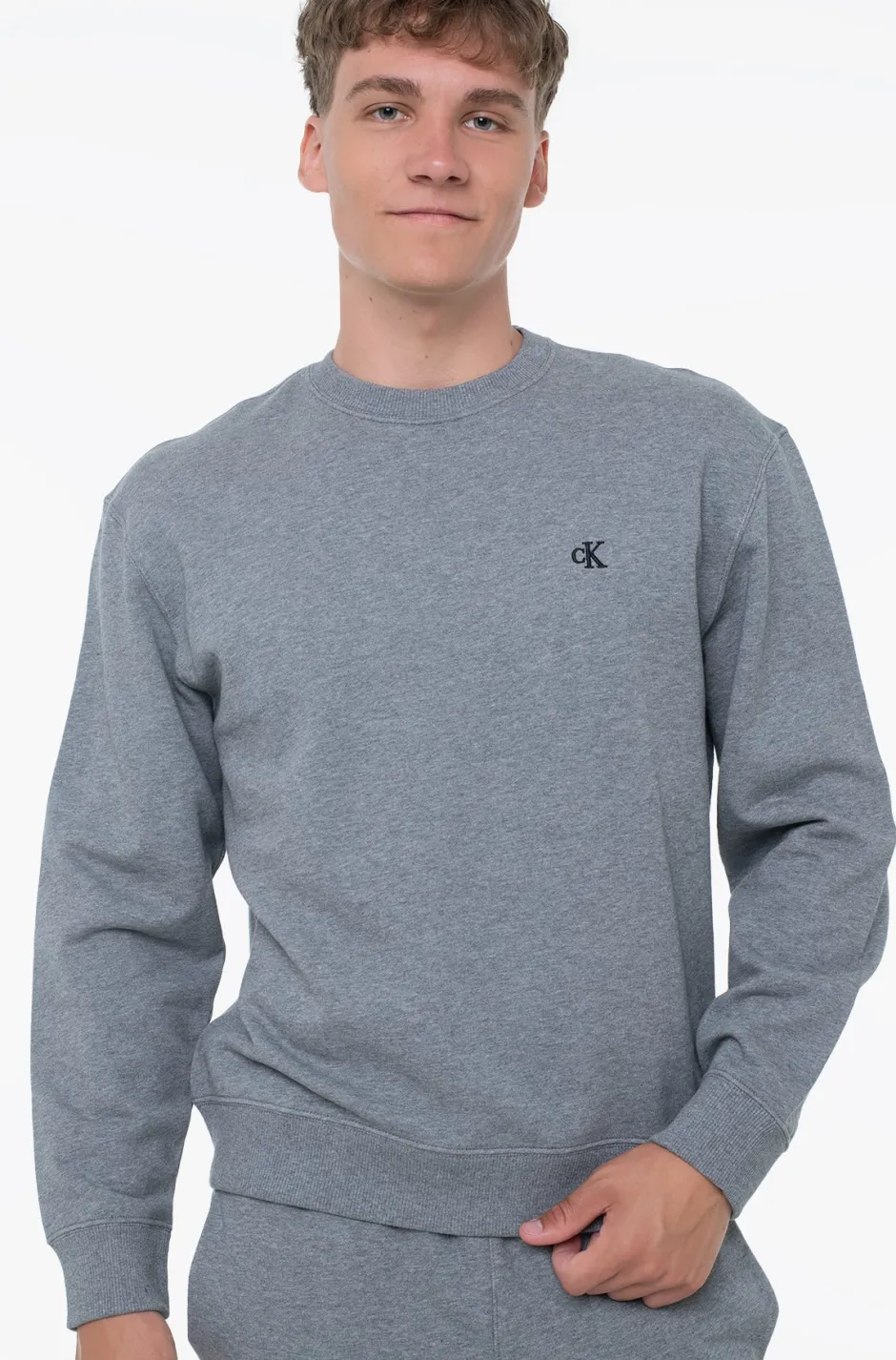 Klassinen collegepaita, jossa resorit pääntiellä, hihoissa ja helmassa. Rinnassa CK-logo brodeerattuna. Malli on 189cm pitkä ja käyttää kokoa M.