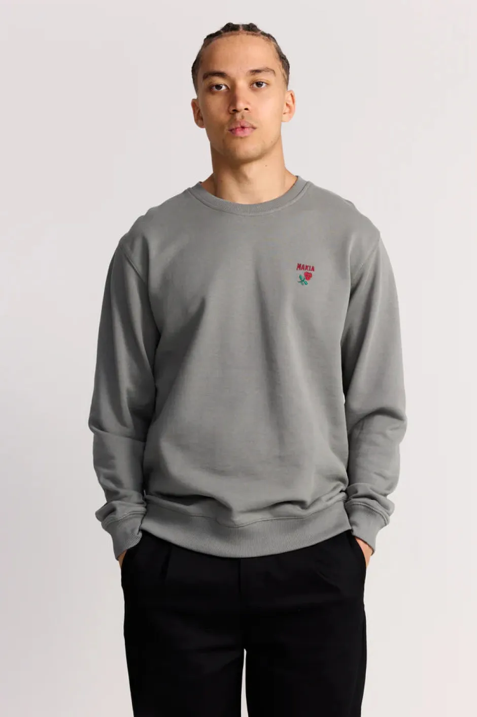 Normaali istuvuus, 100 % luomupuuvillasta valmistettu collegepaita.