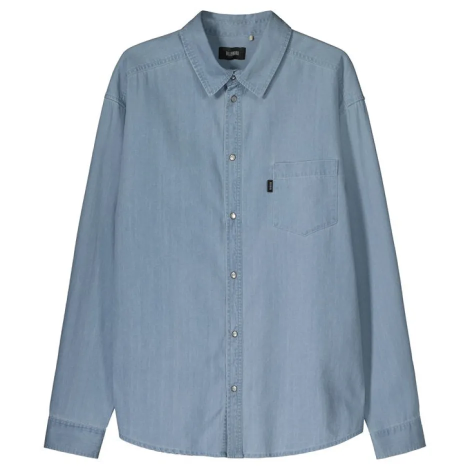 Tämä Billebeinon farkkupaita on valmistettu laadukkaasti, ja siinä on keskellä oleva nappikiinnitys painonapeilla ja nappikiinnitys hihansuissa.