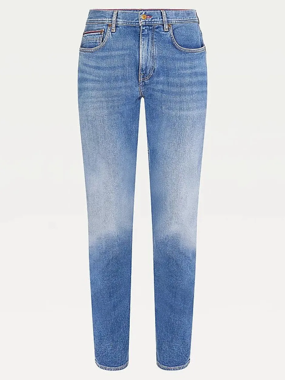Tommy Hilfigerin farkuissa on hiukan väljä istuvuus, suoralla lahkeella. Materiaali on joustavaa puuvilla-elastaania