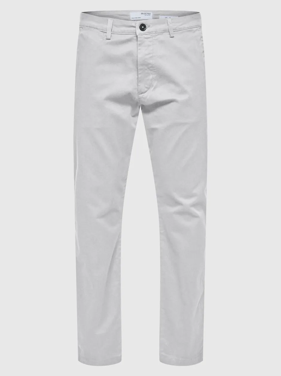 Selectedin Slim Fit malliset chinot. Vaatekaapin peruspilareihin kuuluvissa chinoissa on sivutaskut, vetoketju/nappikiinnitys, nilkkapituiset lahkeet ja vyönlenkit. Nämä housut on valmistettu LYCRA® T400® -kuituinnovaatiosta, joka tarjoaa pitkäkestoisen istuvuuden ja muodon säilymisen