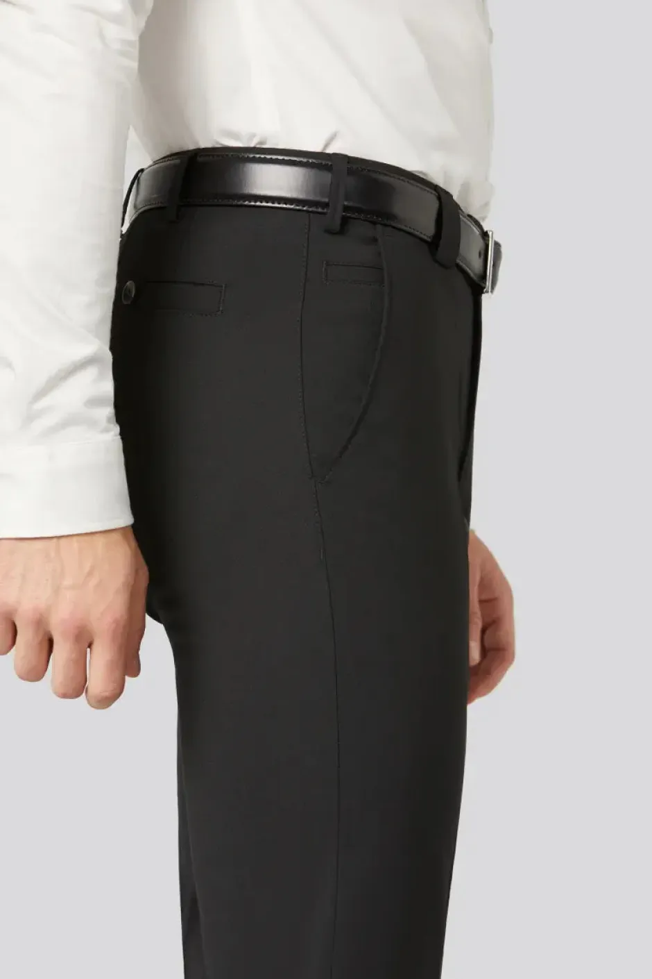 Meyer Roma on hienostunut ja monikäyttöinen housumalli, joka sopii niin bisnes‑ kuin smart casual ‑tyyliin. Huoliteltu leikkaus antaa siistin ja ajattoman ilmeen, kun taas laadukas materiaali takaa kevyen, hengittävän ja miellyttävän käyttötuntuman. Housujen materiaali pitää huolen siitä, että ne laskeutuvat kauniisti ja säilyttävät muotonsa koko päivän — olitpa toimistolla, kokouksessa tai vapaa-ajalla kaupungilla. Hyvin suunnitellut taskut, täydellisesti istuva vyötärö ja viimeistellyt saumat tekevät näistä housuista varman valinnan vaatekaappiin, jossa laatu kohtaa tyylin.