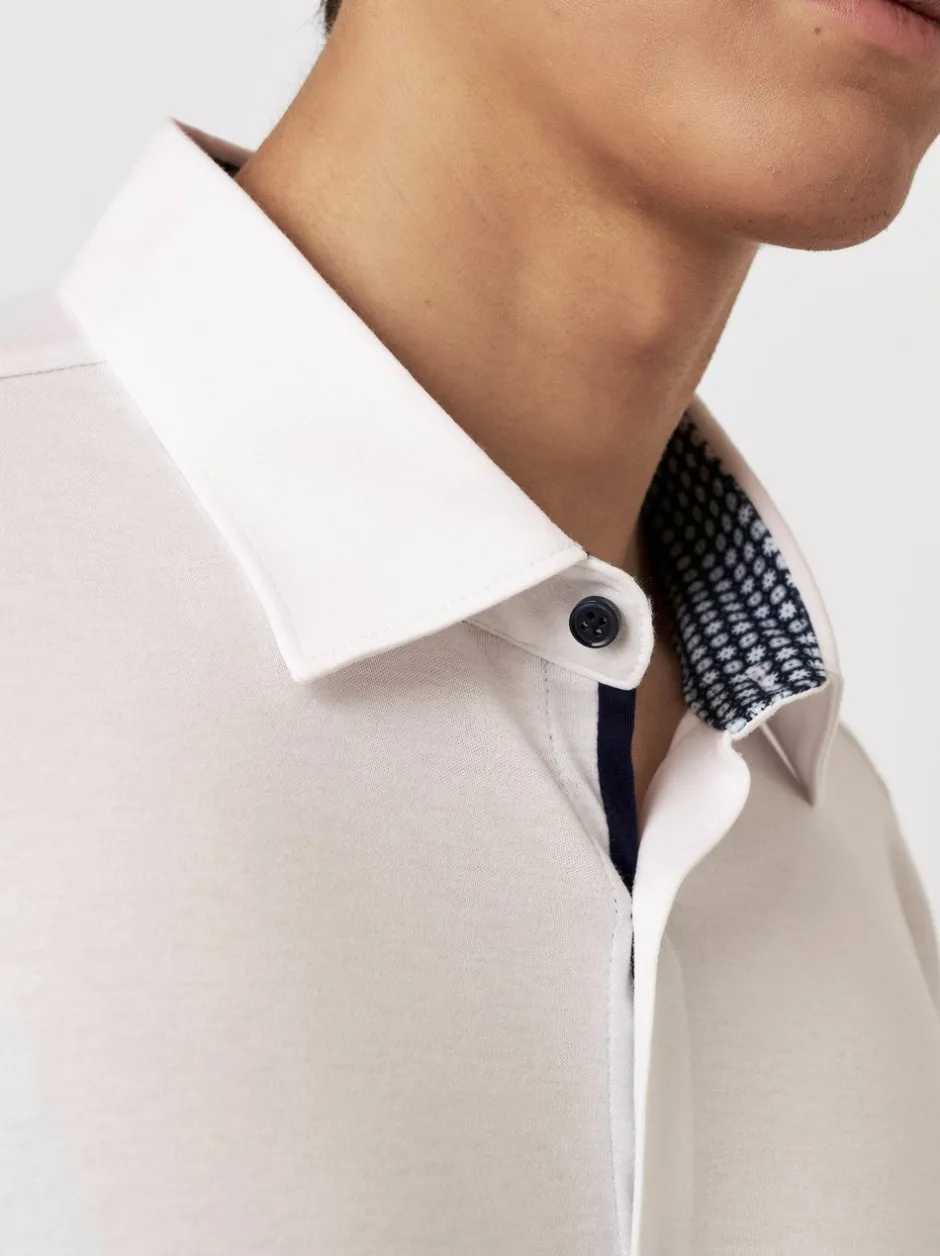 Kauluspaidan minimalistinen design ja puhdas valkoinen väri tekevät siitä monikäyttöisen vaihtoehdon niin toimistoon, vapaa-ajalle kuin juhlavampiinkin tilanteisiin. Non-iron-materiaali säästää aikaa ja takaa aina siistin ilmeen.