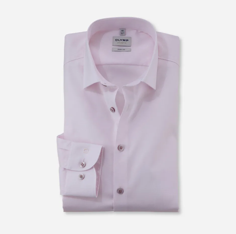 Olymp miesten tyylikäs pitkähihainen kauluspaita. Skarpit kaulukset, napitus edessä ja hihoissa sekä vartalonmyötäinen istuvuus. Kevyt materiaali, joka hengittää ja joka kuivuu nopeasti.