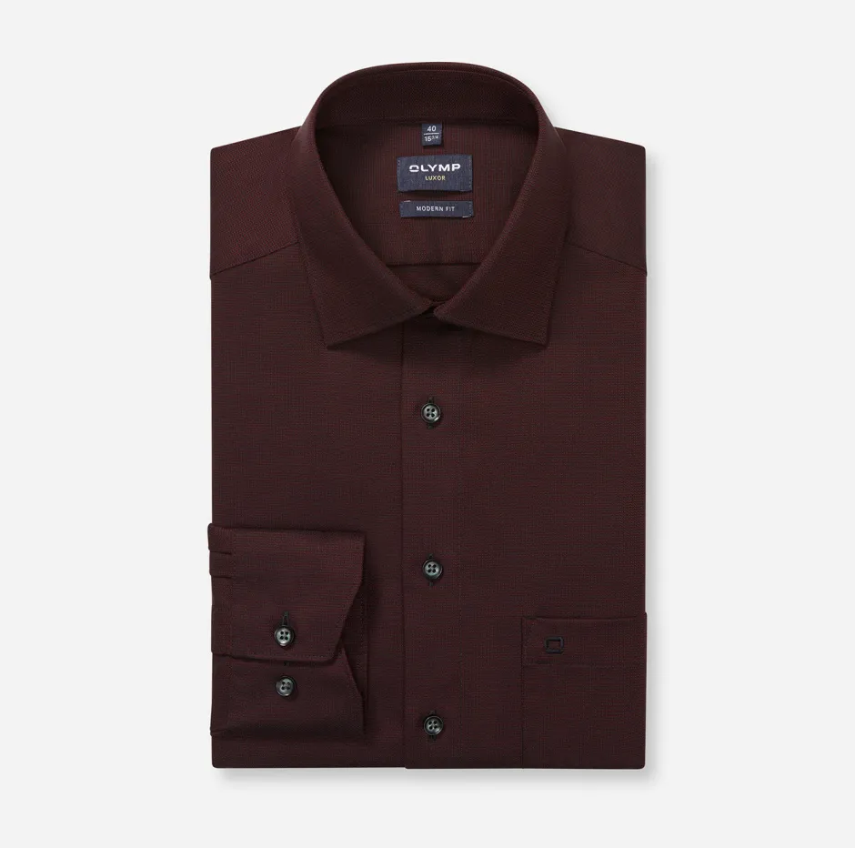 Tämä OLYMP Luxor Modern Fit -paita yhdistää elegantin ulkonäön ja käytännöllisyyden. Valmistettu 100 % puuvillasta, joka on non‑iron‑käsitelty, joten paita säilyy sileänä ilman silittämistä. Modern Fit ‑leikkaus tarjoaa huolitellun, hieman vartalonmyötäisen siluetin ja New Kent‑kaulus tuo klassista bisnestyyliä. Bordeaux-väri on tyylikäs ja monipuolinen, sopien erinomaisesti sekä pukujen että yksiväristen housujen kanssa. Paidassa on myös rintatasku brodeerauksella ja se on hengittävä ja ihoystävällinen – sopii koko päivän käyttöön.