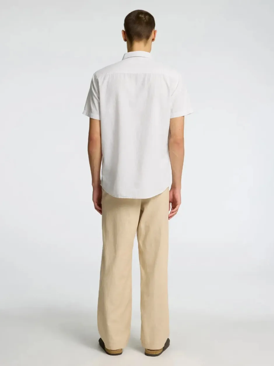 Selected miesten kauluspaita, normaali mitoitus. Materiaali pehmeää ja vilpoista pellavan ja puuvillan sekoitetta.