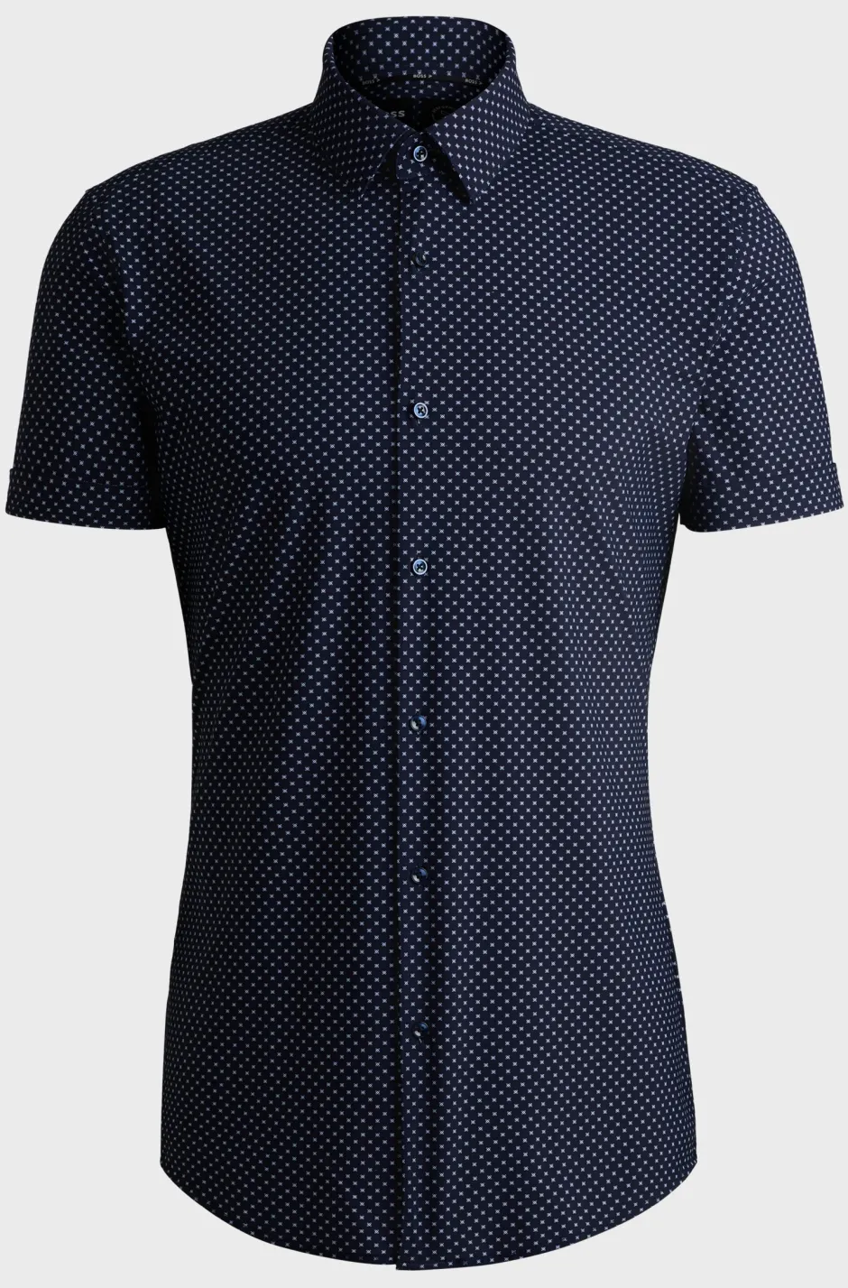 HUGO BOSSin miesten slim-fit-kauluspaita (mallinumero 50539369) yhdistää modernin tyylin ja suorituskykyisen mukavuuden, tehden siitä erinomaisen valinnan niin työpäivään kuin vapaa-aikaan.